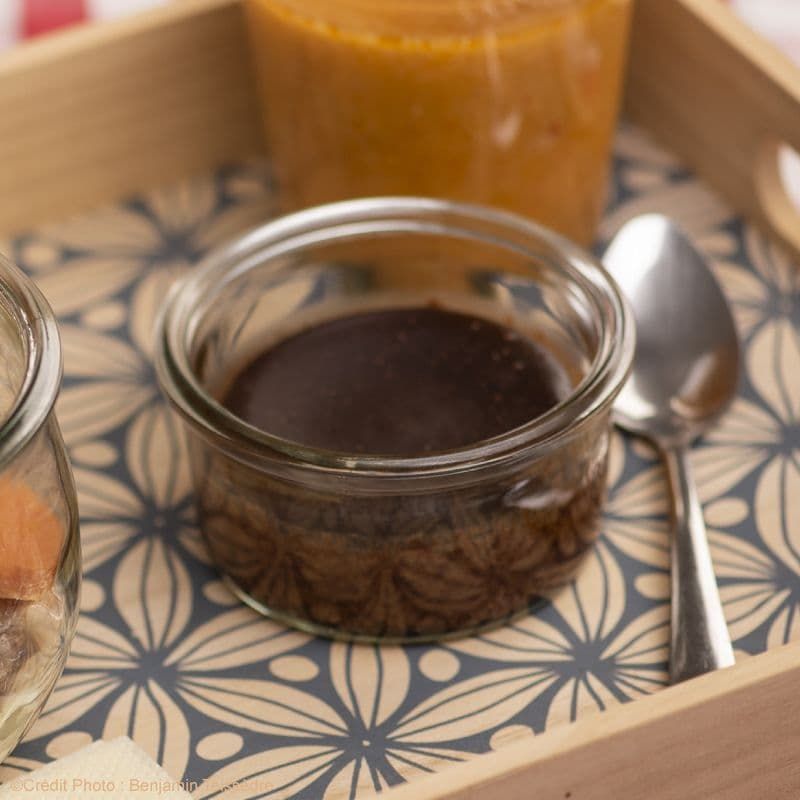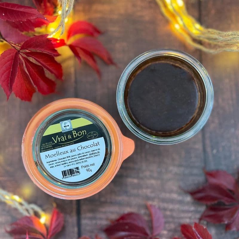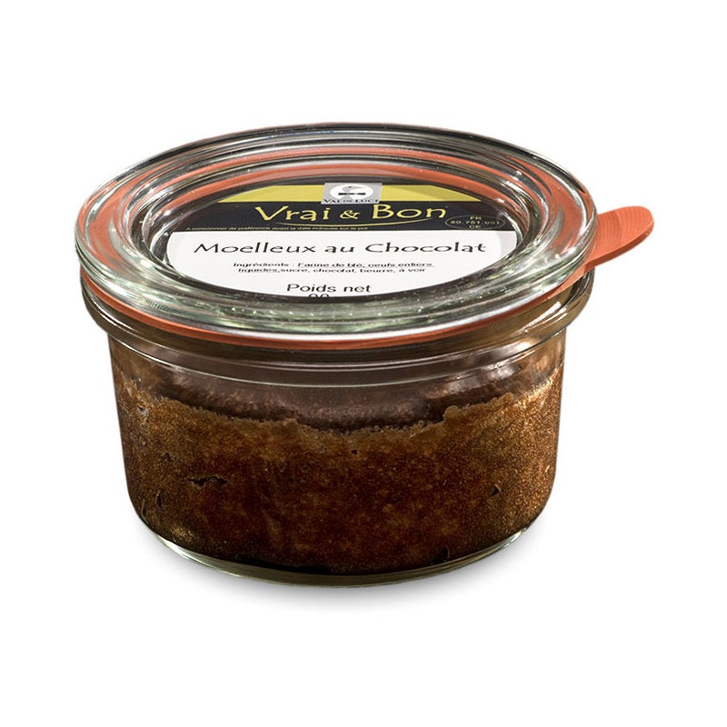 Chocolat 26% (sucre, pâte de cacao, beurre de cacao, émulsifiant : lécithine de soja, arôme vanille), œufs entiers liquides, beurre (lait origine UE), sucre, farine de blé.